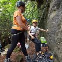 and a single child, parents and several children. The greatest advantage in the outdoor situation is children are able to belay their parents using Grigris and direct belays so weight difference isn’t an issue and it means children can learn to belay too in a safe and controlled manner as all the weight is transferred to the anchor – often a big sturdy tree.